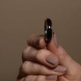 The striking contrast between the dark black glossy look of the ebony and the brilliant shine of white gold in this classic width band make this a favorite of all who see it. Its time-honored shape is balanced perfectly by the modern twist of the wood inlay. This ring is right at home in both formal and casual settings.